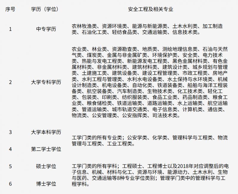 。(二)具有安全工程及相关专业大学本科学历,从事安全生产业务满3年;或具有其他专业大学本科学历,从事安全生产业务满