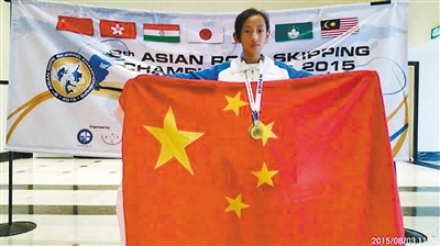 12岁的王美诺虽然身材瘦小,但在第八届亚洲跳绳锦标赛上,在个人大师赛30秒单摇速度跳比赛中,以单脚数101对的战绩,为中国女队夺得首金,打破亚洲纪录,同时成为世界上首位在30秒单摇跳比赛中跳100对以上、年龄在14岁以下的女子。